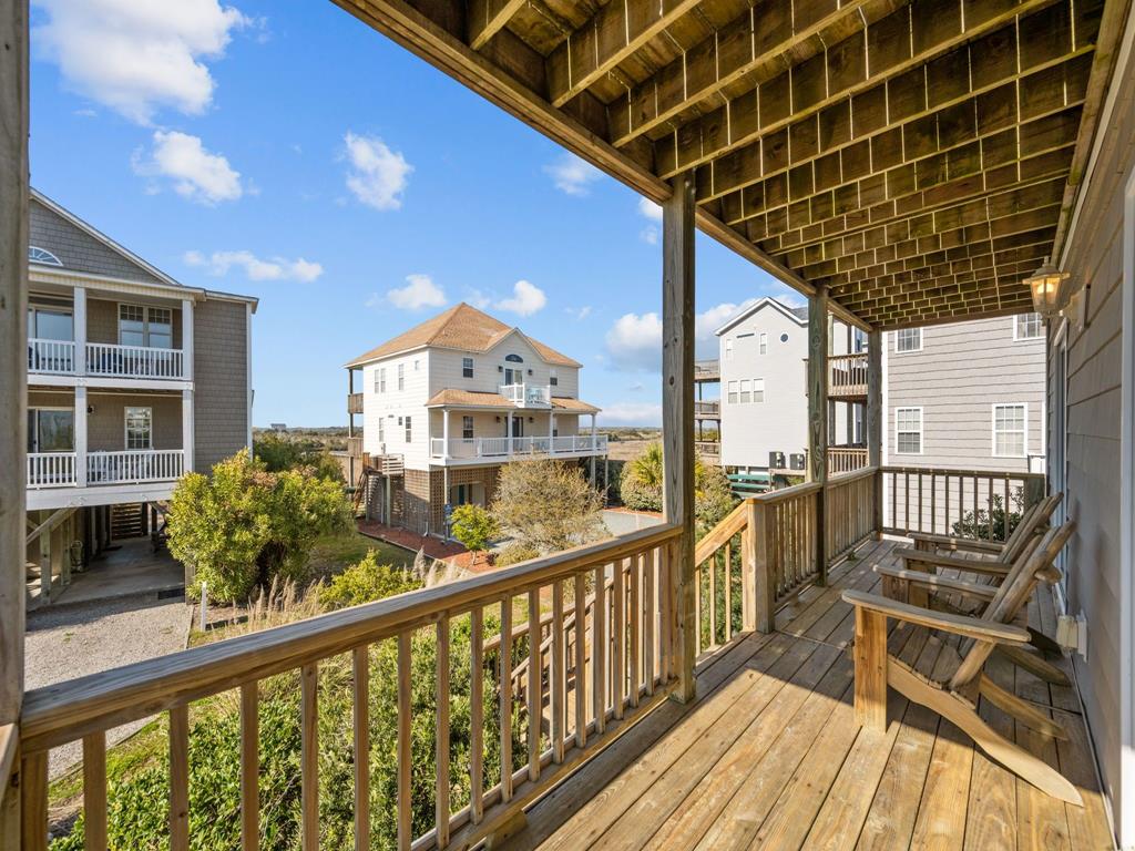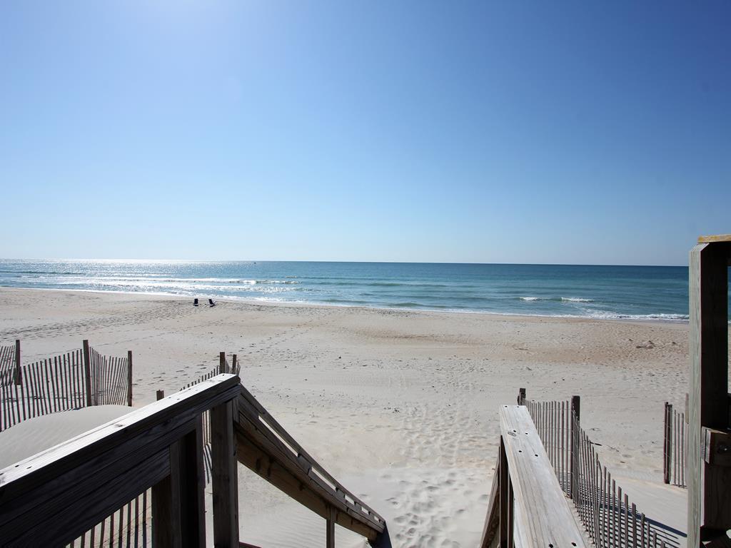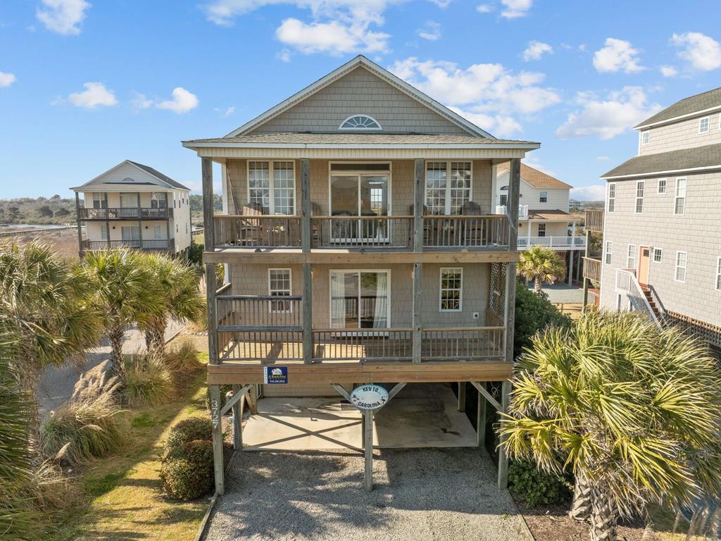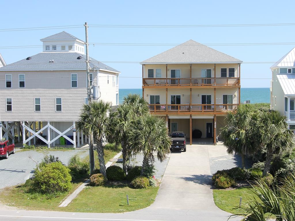 Let this home be your Key to the Carolina coast! Beautiful ocean views and easy beach access directly across the street! Enjoy cool ocean breezes and fantastic views from the front covered decks and glimpses of the waterway from the back decks. The open living, dining and kitchen area are located on the top floor with a bedroom and shower bath. This bedroom has a queen bed and desk area. On the first floor, the king master suite has a private shower bath and sliding glass door to the covered deck. The other bedrooms have queen beds with private doors to the back deck. One of these has a door to the hall tub/shower bathroom with laundry closet. There is an enclosed outdoor shower on the ground level for easy rinse off from the sandy beach located directly across the street. 4 BR, 3 Bath / Occupancy Limit: 8 - 1 K, 3 Q LINENS not included unless purchased, PETS ALLOWED w/ $215 fee for one dog, $404 for 2. NO SMOKING ALLOWED * Keyless Entry